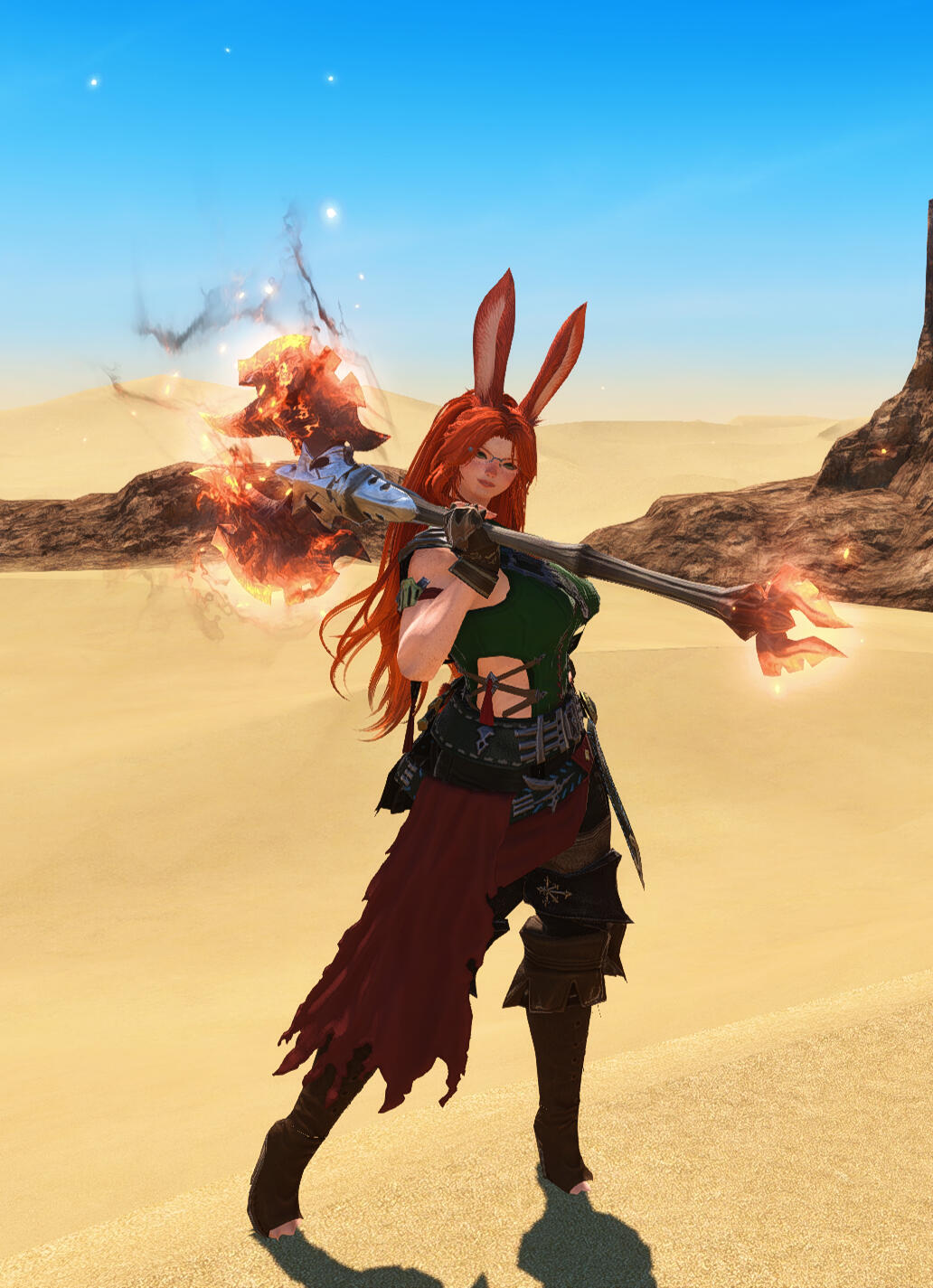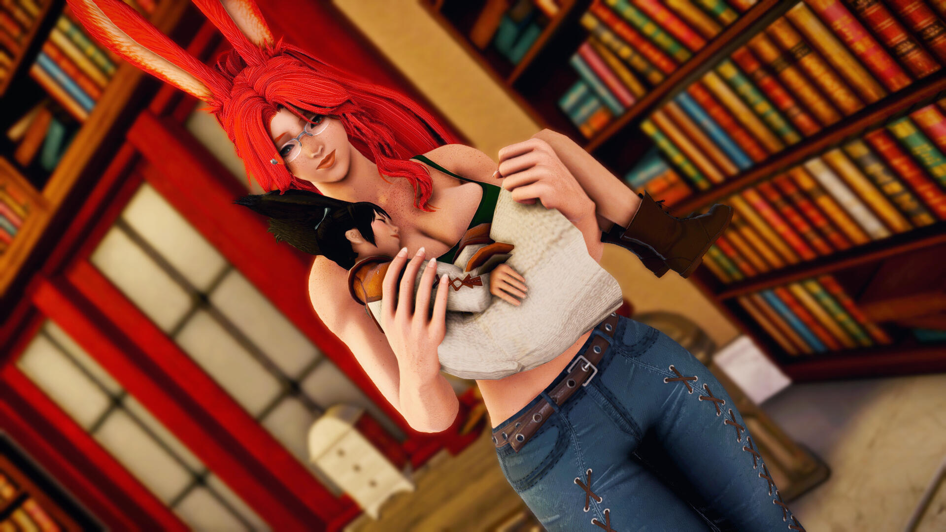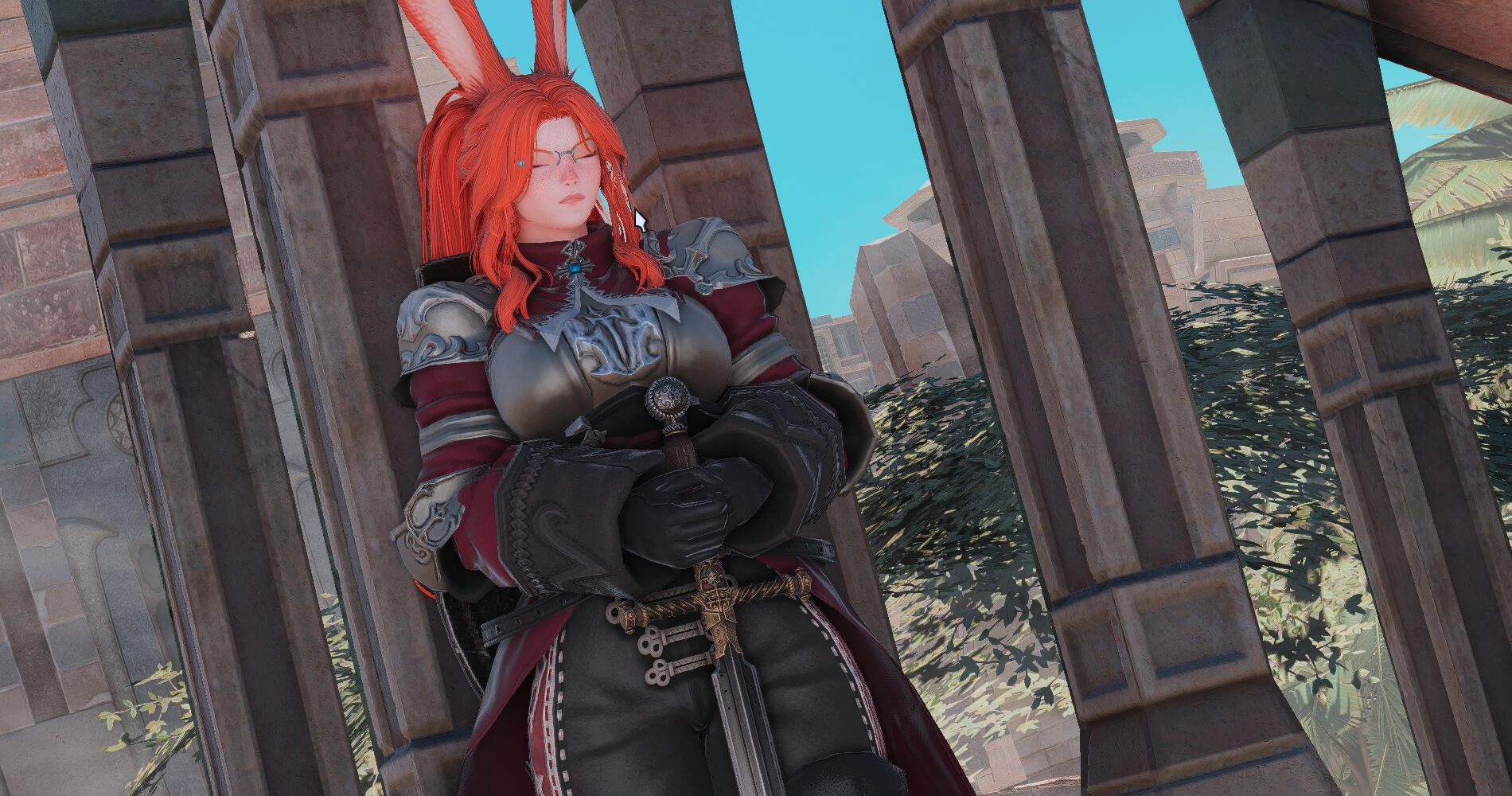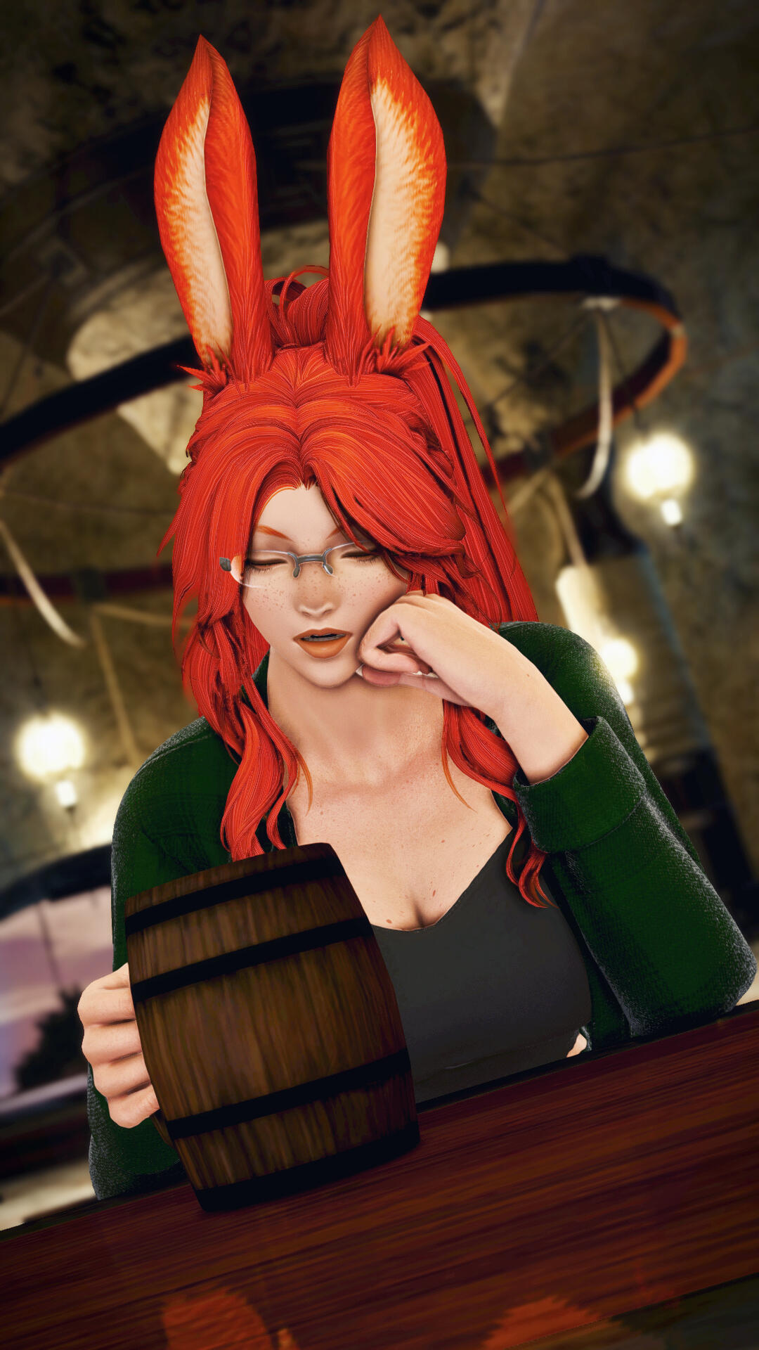 Her return was not really how she imagined it, in many aspects. Hypatia felt stranger to her own land, the airship landing in the capital she never had chance to see before. Albeit part of the same kingdom, the royal city of Rabanastre has little in common with Leà Monde. It is way bigger, named with reason the desert sapphire: its colorful wall and lush oasis appearing like a mirage in the never-ending sea of sand dunes. And far hotter than than her coastal birthplace surrounded by vineyards.Still, it was now here her mother lived. After the IVth legion final demise, many flocked back in their once ancestral homes to reconstruct the city to its past splendor. Of course, much was still left to be done, but parts of the city were already brought back to life. Even before the landing, mother and kit were on the same light. Too hot ! The scorching sun peculiarly unkind to their pale skin... But finding shelter had to wait a both expected and apprehended family reunion.Hypatia was of course happy to see her mother back and Lin to meet her "grandma". But how she will react after all this, what she became? Once more, things turned far from what she could imagine, aside perhaps the crushing embrace of the even taller viera. She wasn't alone: half dozen member of her clan came to see the chieftain's daughter, some still familiar to Hypa from her time in the resistance. Erin changed for a far less brutish behavior she could recollect, and even actually sweet to Lin. She could swear she wasn't treated that well back in the day... The explanation for this change hit her like a red chocobo's meteor when they reached the clan's tavern.After Hypatia's capture, Erin started to crumble, believing her only daughter dead. Her distress found echo in many resistant grieving friends and relative lost for the cause. Yet, one hrotgar from the Bozjan allies found himself quite touched by the giantess' despair. Mutual support grew into a bond, then even the viera used to see men as replaceable males finally discovered love. Only few months prior, the unusual couple was blessed with child, a viera kit with light red hairs... Seeing both her mother lovey-dovey AND an infant sister caused Hypatia to take the worst hangover in her life.She was at first very upset with her mother, eventually leading them to trade blows... Until Lin interposed. Forced to words instead fists, Hypatia and Erin had sort out the feeling of betrayal and being replaced. Worst than that, Hypatia's fate in garlean's cell comforted her so far in the belief most males were animals... Selfsame belief engraved by her mother. It would take both time to mend their broken relation, but at least they had the chance to do so. In extremis, Erin and her companion Selven -she will never call him step dad- managed to convince her staying around for a bit. But Lin's plea to stay with the baby Mana was the last push to make her accept.And so, while taking new marks in her "home" and in the clan, Hypatia prepares with their support the hunt for garlean. Not for vengeance this time, but to ensure both her and Lin's future. If someone was searching them, they had to be aware of their condition. And with answers able to help them keep it in check.In the mean time, Hypatia makes use of her experience earned in Gridania to act as a reliable member of the clan, increasingly put in charge of squads of less experienced blades. Lin found herself a new teacher in the figure of an old bangaa, quite happy to find a promising pupil for his red magick lessons. Both girls live for now in one of the many clan's inn room, involving them in running the establishment : from serving, cooking for the redhead, handling requests for the daughter. And of course, enjoying the quite frequent but cheerful bar fights !